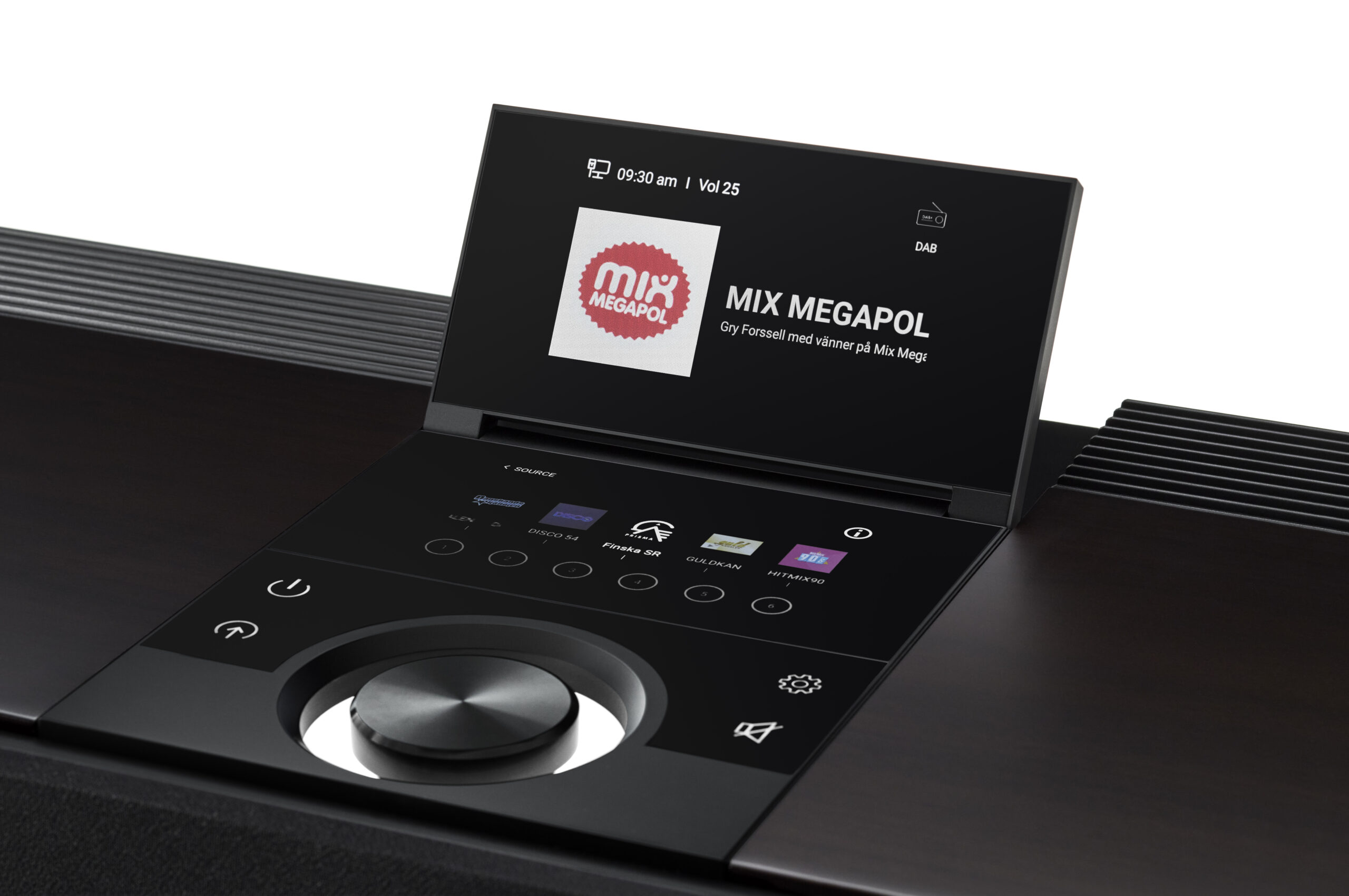 FM and DAB+ radio putting favorite stations at one of the easily programmed preset buttons on the touchscreen display.