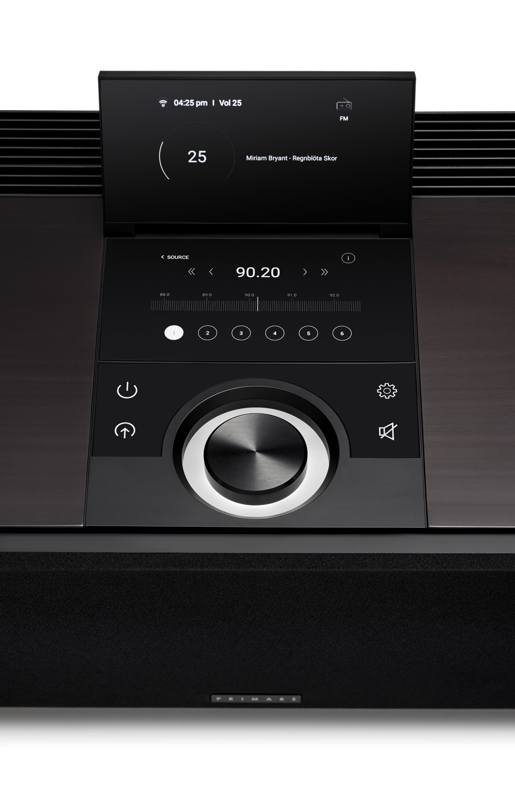 Allt-i-Ett provides effortlessly control and connection. A fixed touchscreen, motorized display, and large volume control make it simple to access and monitor all entertainment options directly from Allt-i-Ett. Alternatively, the PRISMA remote control and application allow for complete setup and control from a distance.